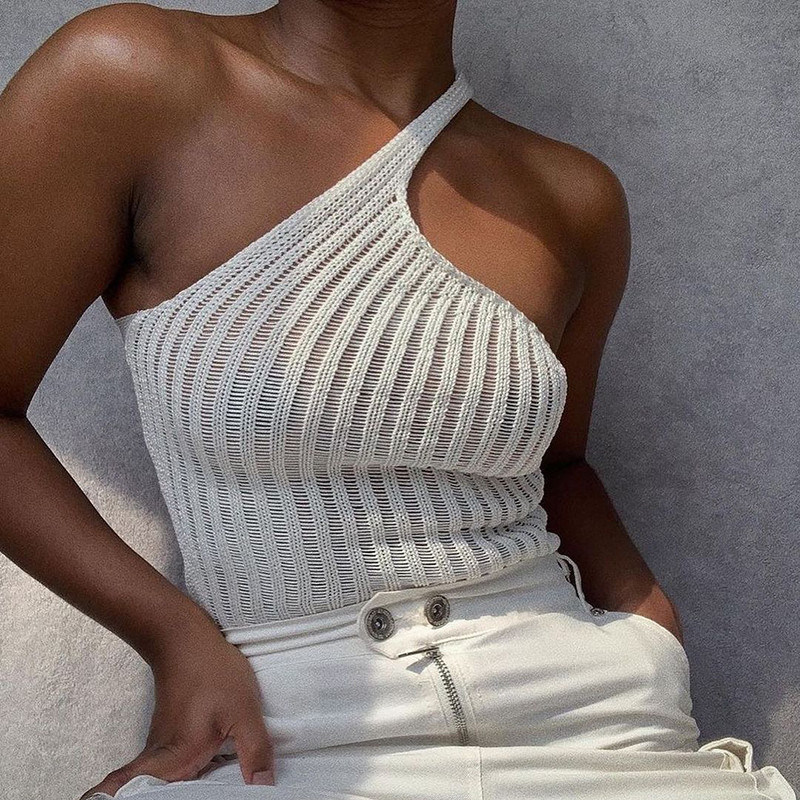 짧은 스타일 양모 직조 비스듬한 어깨 뒤 심장 블라우스 T 셔츠 여성